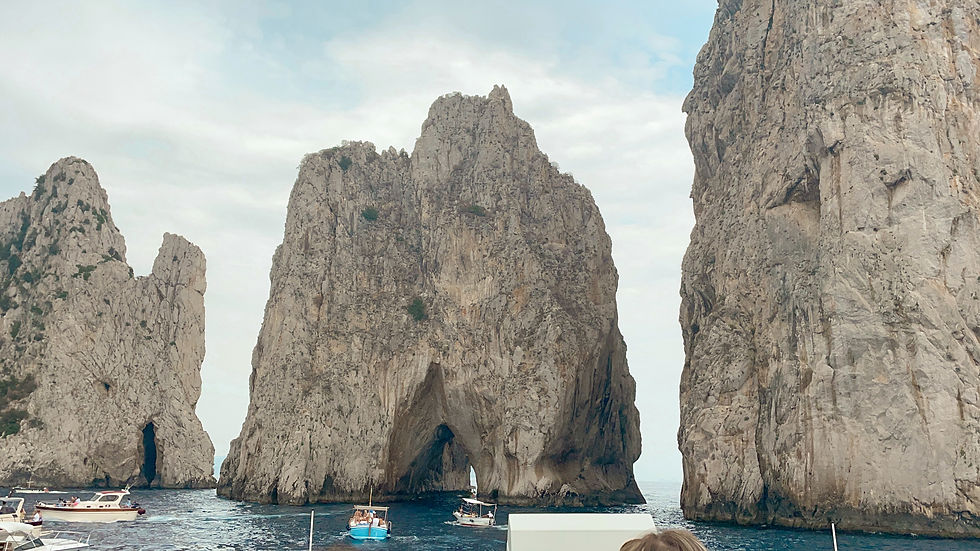The rest of the day included us taking a huge boat around the island of Capri, and also doing the Blue Grotto (which in my opinion I could have skipped the Blue Grotto part). Blue Grotto is a dark cave where the water glows blue because of the sun hitting under the water. It was cool to see, but it lasted only 2 minutes and the experience was kind of weird with the guy who took us into it with a tiny boat. He ended up hitting me accidentally with his oar and we barely fit into the opening of the cave so it was kind of scary.